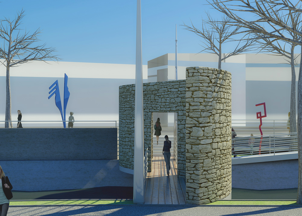 Aree di percorrenza che diventano passeggiate, aree di sosta che diventano punti di osservazione sempre diversi, scorci da scoprire e riscoprire.Il tema del collegamento è trattato come percorso “sperimentale” che stimola la percezione dello spazio attraverso una visione soggettiva, diventando così arte visiva…una personale esperienza sensoriale. Un percorso di reazione e collegamento che coinvolgerà il fruitore in una rilettura dello “spazio” circostante… Un occasione per percepire la luce, i suoni e il panorama in modo diverso, attraverso un filtro che riesca a catturare l’attenzione anche dei residenti, abituati da sempre, alla stessa lettura del loro tessuto urbano. …Un luogo dello stare, dove le persone si incontrano e dove il quartiere comunica…L’incastro conciliante di vecchio e nuovo, le gallerie d’arte a cielo aperto e le rassicuranti atmosfere fanno di San Sperate e del Rio Concias un orizzonte in continuo divenire. La memoria diventa parte integrante di un nuovo progetto. Il “nuovo”, infatti, è un ponte costituito da una struttura in acciaio portante, sostenuta da due pilastri con tiranti, rivestita in legno, il “vecchio” è un muro in pietra locale sospeso sul fiume dove al centro si apre una Porta Nuova, simbolo del Paese. Il progetto prevede una rampa, occasione per ampliare le aree di sosta, d’arte, d’osservatorio, di meditazione e dello “stare” del ponte.La rampa inoltre permette un collegamento tra le due sponde non precludendo la possibilità di una futura realizzazione di una pista ciclabile. Il progetto ha la presunzione di essere un passo avanti all’idea di identità e riappropriazione del territorio attraverso un nuovo dialogo tra luogo e arte visiva iniziato nel lontano 1968 e che ha portato San Sperate a diventare il “Paese Museo” Il progetto diventerà, infatti, un’ occasione di scambio tra culture diverse, apporterà un elemento di arricchimento al territorio, aperto già da tempo all’arte contemporanea internazionale, senza dimenticare le radici culturali e architettoniche locali. …Una porta sul Rio Concias…Una porta nel fiume dei writers…Una nuova immagine di ponte pedonale, sviluppando la naturale vocazione del luogo, già utilizzato per la sosta oltre che per il transito, creando un elemento significativo di aggregazione, tenendo conto delle diverse categorie di utenti e della fruizione nelle diverse ore del giorno. Il pilastro nella sua parte terminale diventa faro, ognuno illumina una “faccia” del ponte rendendo protagonista entrambi i lati del “muro” ed evidenziando la sua “sospensione” anche di notte. …Un elemento simbolo per il quartiere…Un’icona… |
