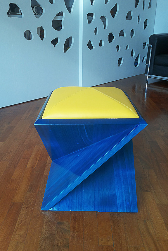Essenza : massello di Paulownia colorato effetto gloss + seduta in pelle.